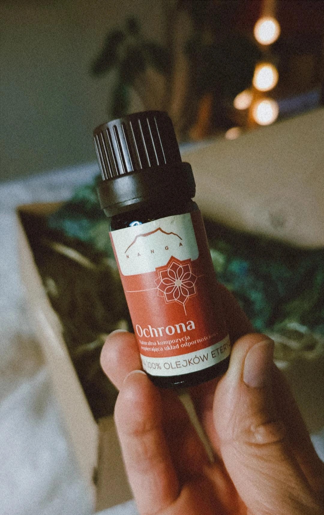 - Mieszanka olejków eterycznych wspierająca w infekcjach – to wariacja na temat słynnego „olejku czterech złodziei”. Mieszanka, którą otrzymasz w zestawie, jest kompozycją olejków eterycznych z sześciu roślin. Pomarańcza rozpromienia szaro-bure nastroje, dodaje energii i działa antybakteryjnie. Cytryna orzeźwia, łagodzi stres i wspiera organizm w walce z bakteriami i grzybami. Eukaliptus odświeża drogi oddechowe, przynosząc ulgę ciału i umysłowi. Goździk swoim intensywnym, korzennym aromatem rozgrzewa i łagodzi bóle mięśni oraz stawów. Rozmaryn odblokowuje zatkany nos, wzmacnia pamięć i koncentrację, działając przy tym przeciwbakteryjnie i przeciwgrzybiczo. Cynamon wspiera organizm w infekcjach górnych dróg oddechowych, rozgrzewa ciało i poprawia skupienie. Razem układają się w przyjemny, korzenno-cytrusowy aromat, który koi zmysły.