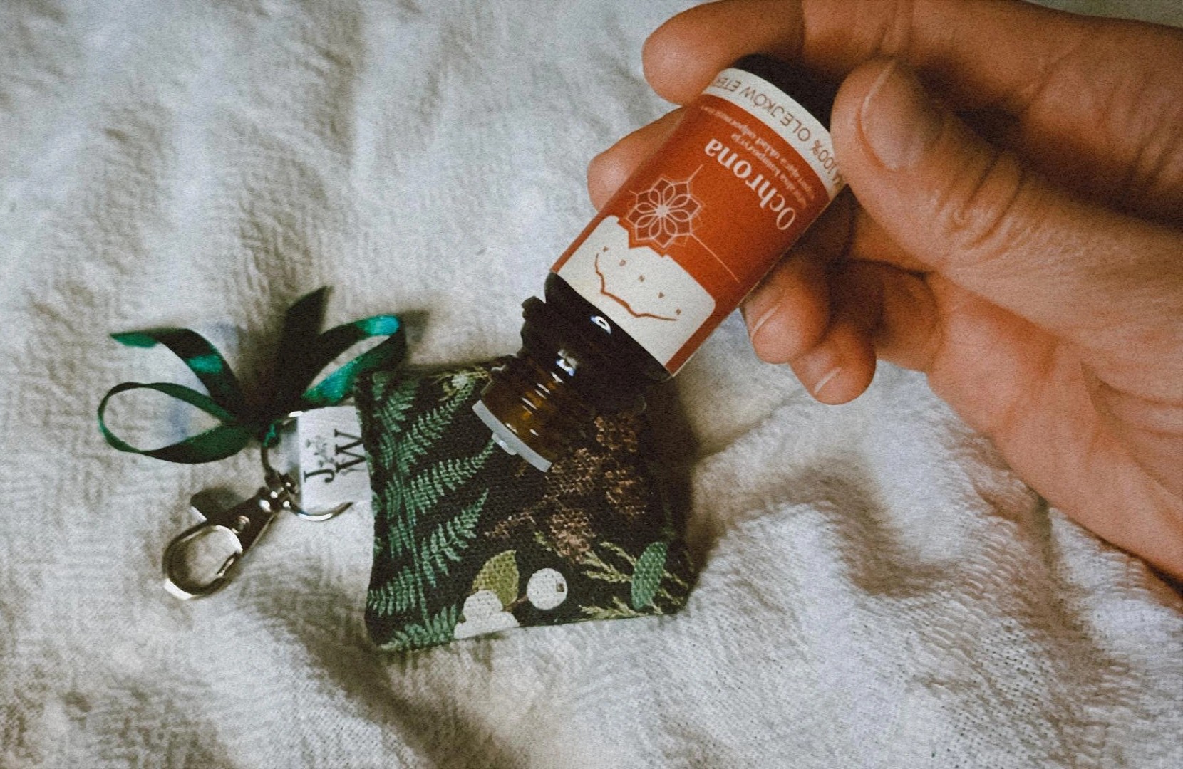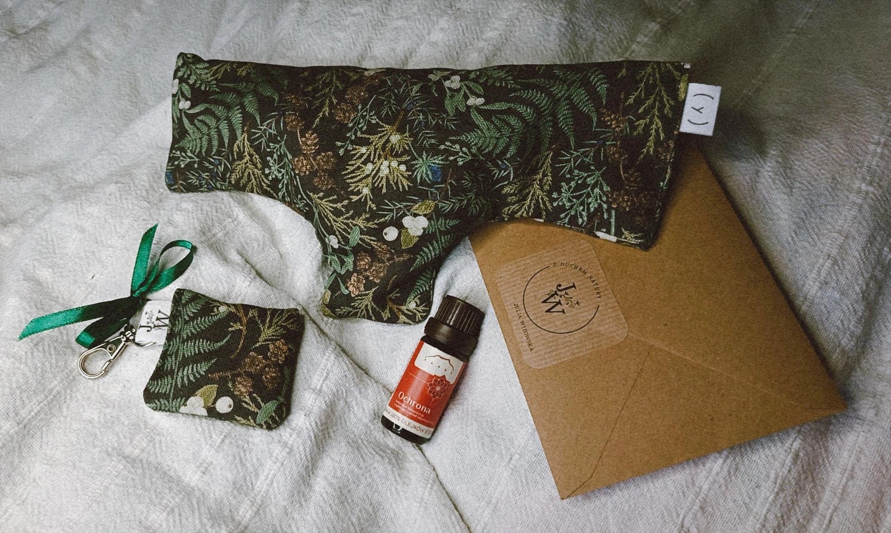 - Małą poduszeczkę (z wygodnym do zawieszania breloczkiem) do aromaterapii – stworzoną specjalnie po to, aby zapewnić Ci bezpieczną inhalację w trakcie sesji z kompresem lub niezależnie od Yokompresu. Nanieś 2-3 krople olejku eterycznego na poduszeczkę i umieść ją w odległości ok. 1 metra od siebie. Oddychaj głęboko.